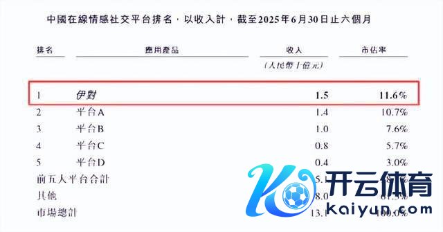 "红娘"模式的革命下,"伊对"付用度户快速增长,招股书数据炫夸,伊对 2025 年上半年的营收约 15 亿元,在线热沈外交平台市占率第一。