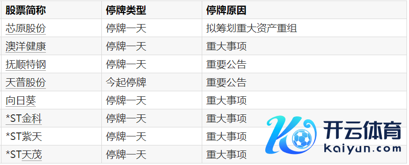 A股停牌辅导:8股本日停牌开云体育A股停牌辅导:8股本日停牌