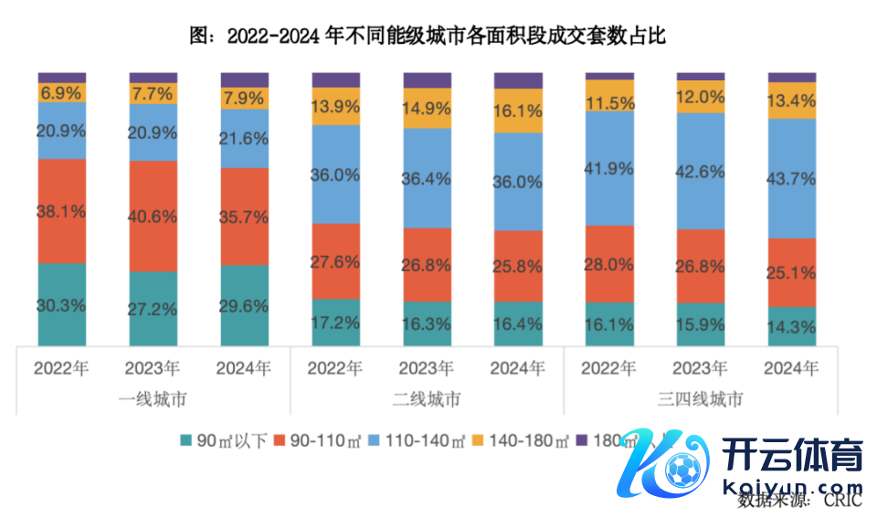 在三四线城市,110 成为赫然的分水岭,跳动这一面积的居品,其市场份额呈执续增长的趋势,而更低面积段居品成交占比畅达2年缩减。