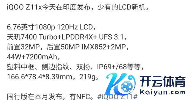 其中iQOO Z11x还是在印度发布,成立也还是崭新出炉。