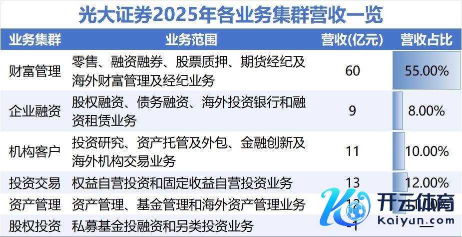 全体来看,四肢在年报中被列为寂寞板块的业务集群,钞票顾问业务集群已成为光大证券事迹高增长的中枢引擎。2025年,该业务集群竣事收入60亿元,占比55%。