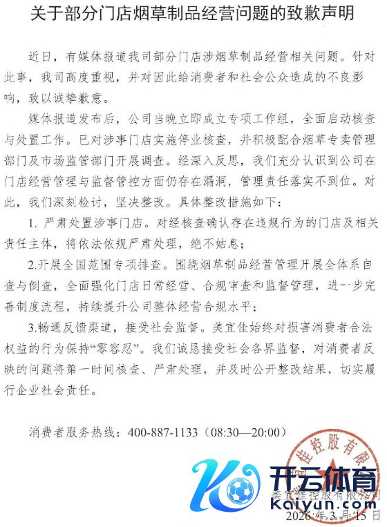 好意思宜佳就部分门店被曝卖假烟致歉:严办涉事门店,开展专项排查好意思宜佳就部分门店被曝卖假烟致歉:严办涉事门店,开展专项排查