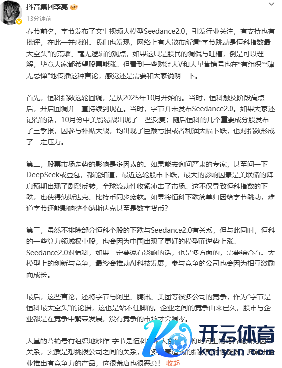 抖音集团李亮:炒作“字节是恒科的最大空头”很放纵也很坏心抖音集团李亮:炒作“字节是恒科的最大空头”很放纵也很坏心