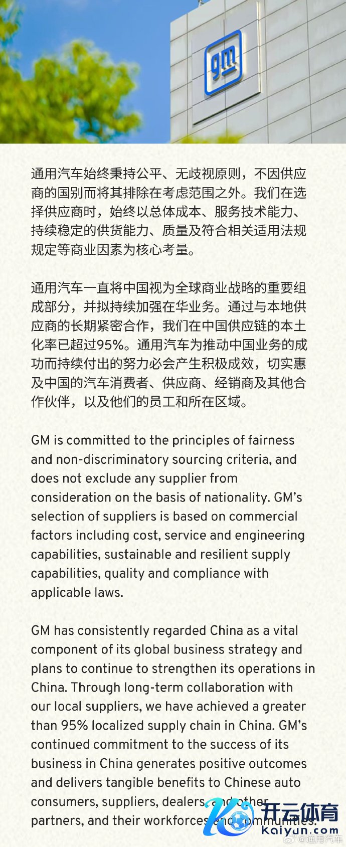 通用汽车:公司在中国供应链的原土化率已朝上95%通用汽车:公司在中国供应链的原土化率已朝上95%