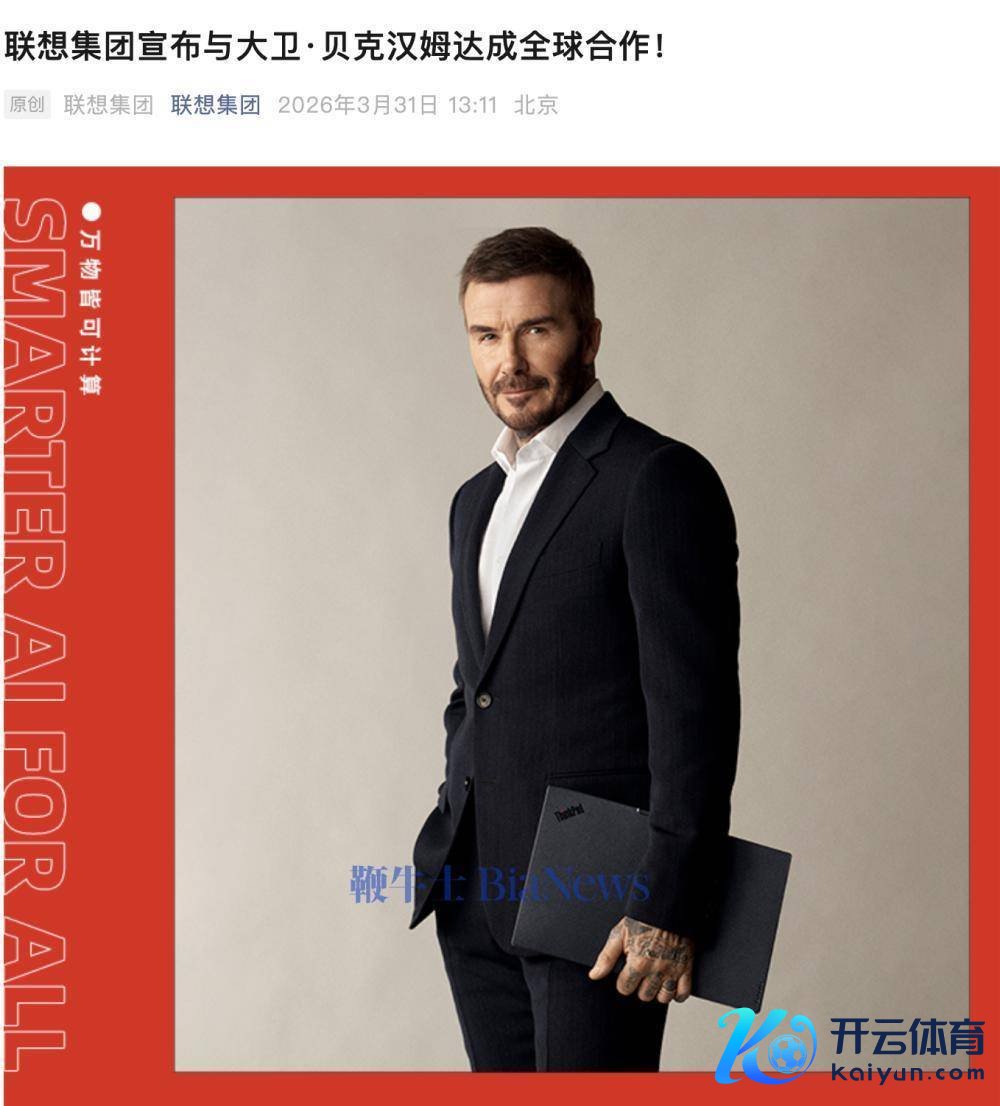 3月28日,鞭牛士独家线路国外足坛神话大卫·贝克汉姆将与中国AI科技企业达成人人配合、艰难东说念主工智能规模的音信,激刊行业与网友的平庸揣度。3月31日,联思集团持重官宣贝克汉姆成为人人配结伴伴,此前爆料一说念好意思满,奥密配合方身份持重揭晓。