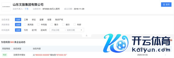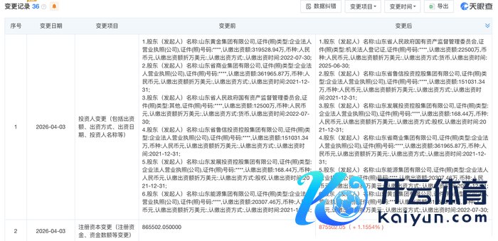 凭据天眼查平台走漏的工商信息流露,本次山东省国资委新增1亿元货币出资,认缴出资日历为2025年6月30日。增资完成后,山东省国资委对山东文旅集团的认缴出资额从1.25亿元变更为2.25亿元,抓股比例也从增资前的1.44%普及1.1258%,最终达到2.57%。