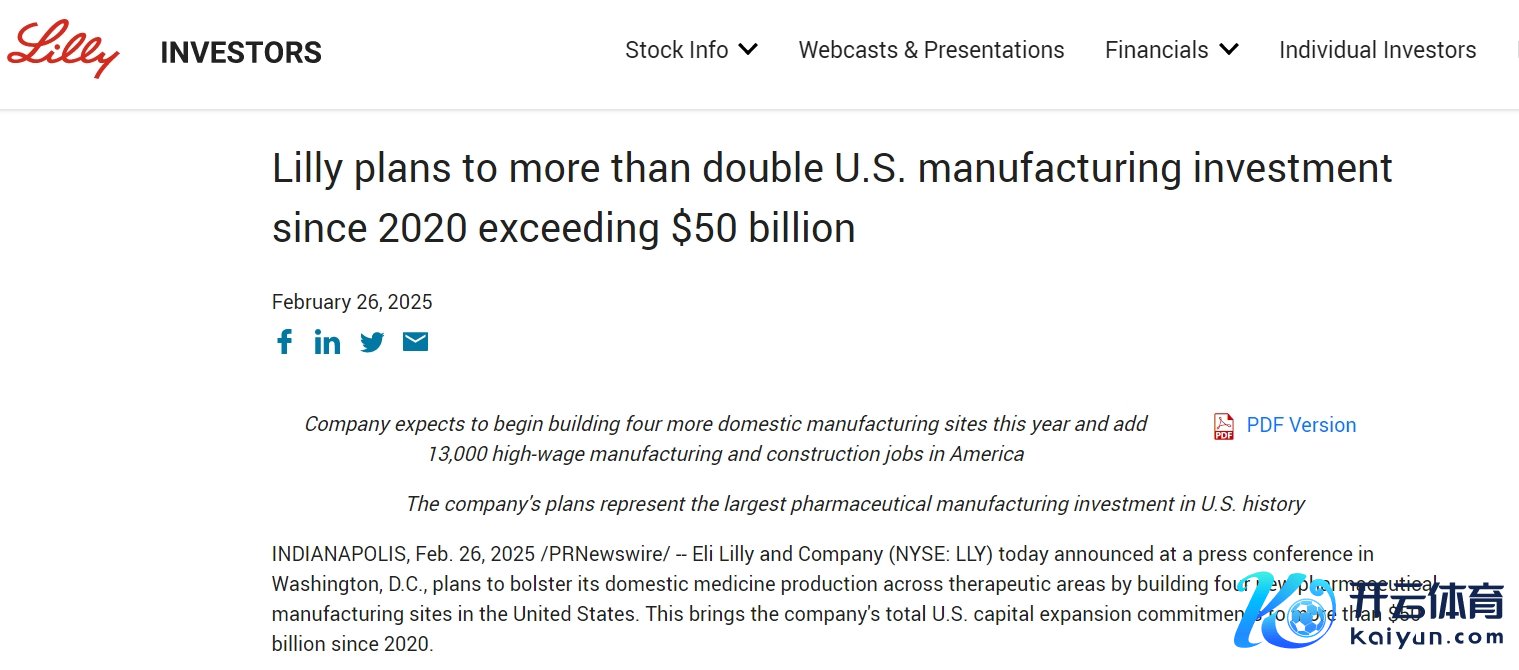 值得留神的是,礼来公司是在华盛顿特区的一次手脚中告示这一音尘的,这也突显了其投资政策背后的政事色调。分析师示意,礼来无疑在向特朗普政府传递一种积极信号——公司解救好意思国制造业的恢复,并但愿借此得到政府的解救。