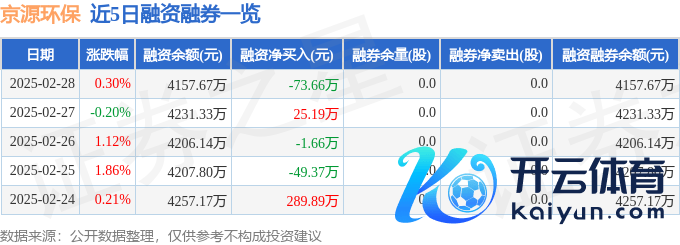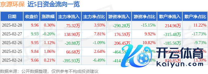 本站音信,收场2025年2月28日收盘,京源环保(688096)报收于9.96元,高潮0.3%,换手率1.27%,成交量1.94万手开yun体育网,成交额1916.39万元。