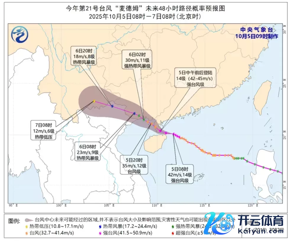 10月5日8时,台风“麦德姆”中心距离距离徐闻县偏东方针约160公里,中心隔邻最大风力14级。征象部门展望,“麦德姆”将持续以25公里傍边的时速向西朔方针移动,强度持续增强,将于10月5日下昼以强台风级在徐闻到东海岛之间沿海地区登陆。